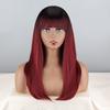 XINRAN Moda feminina longa reta ombre vermelho vinho peruca com franja fibra sintética natural reta cosplay diário uso peruca