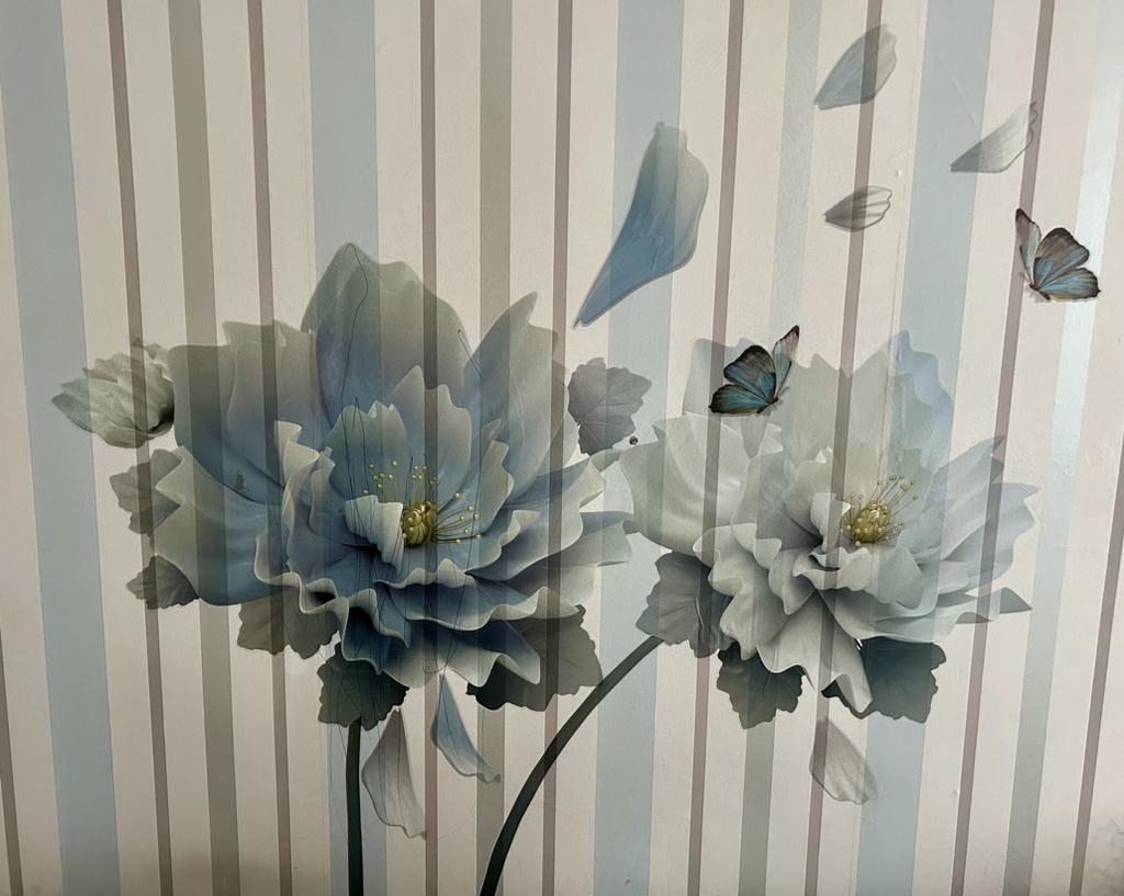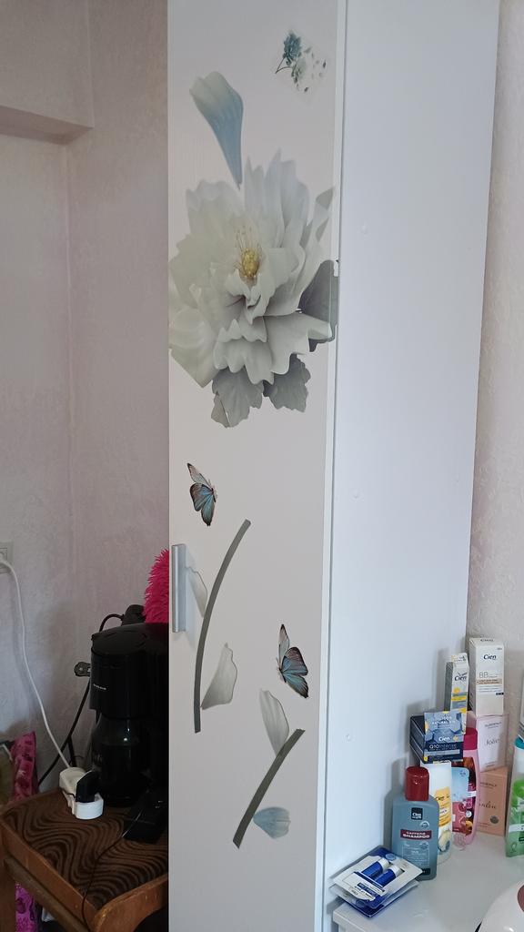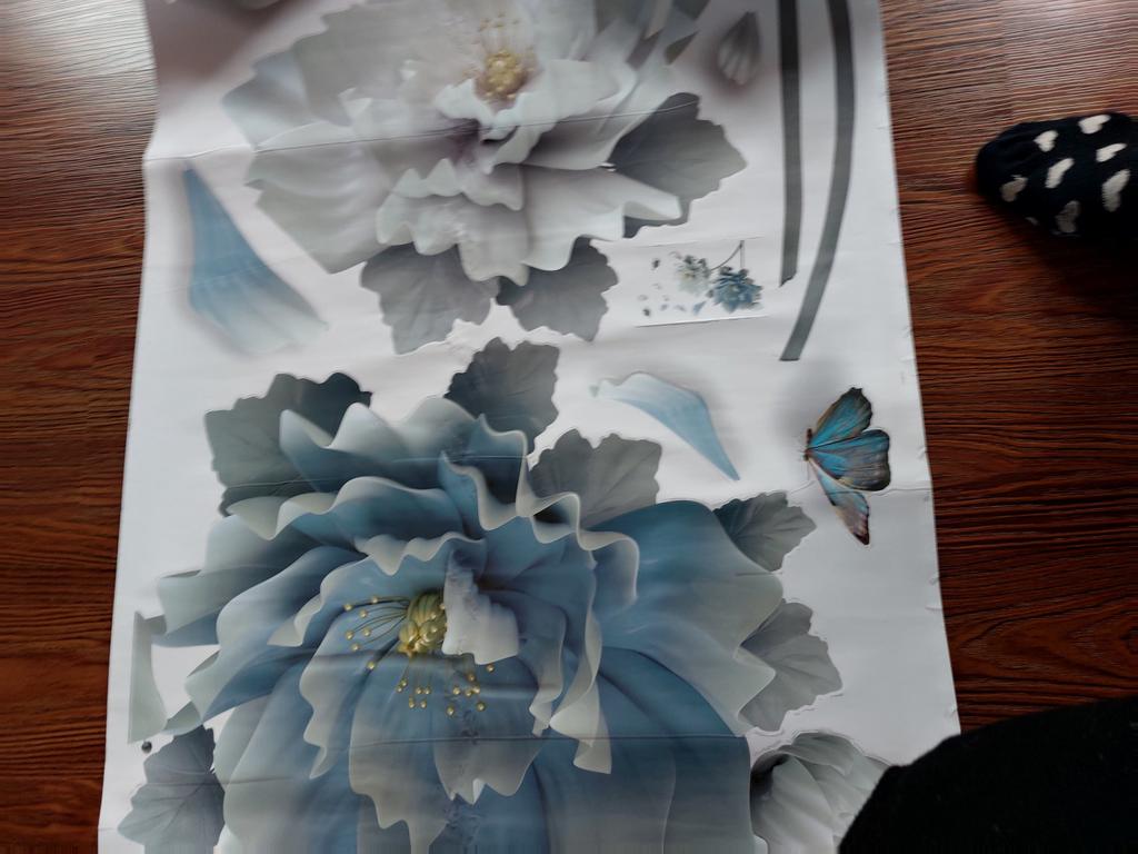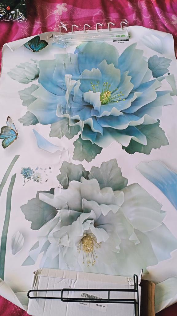 Flores muito lindas, fáceis de colar, mesmo que estejam colocadas incorretamente você pode retirá-las com cuidado e colá-las novamente, elas não rasgam, fico feliz