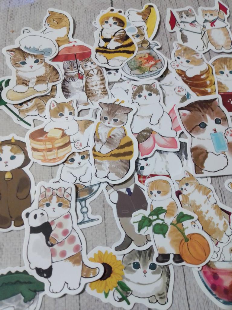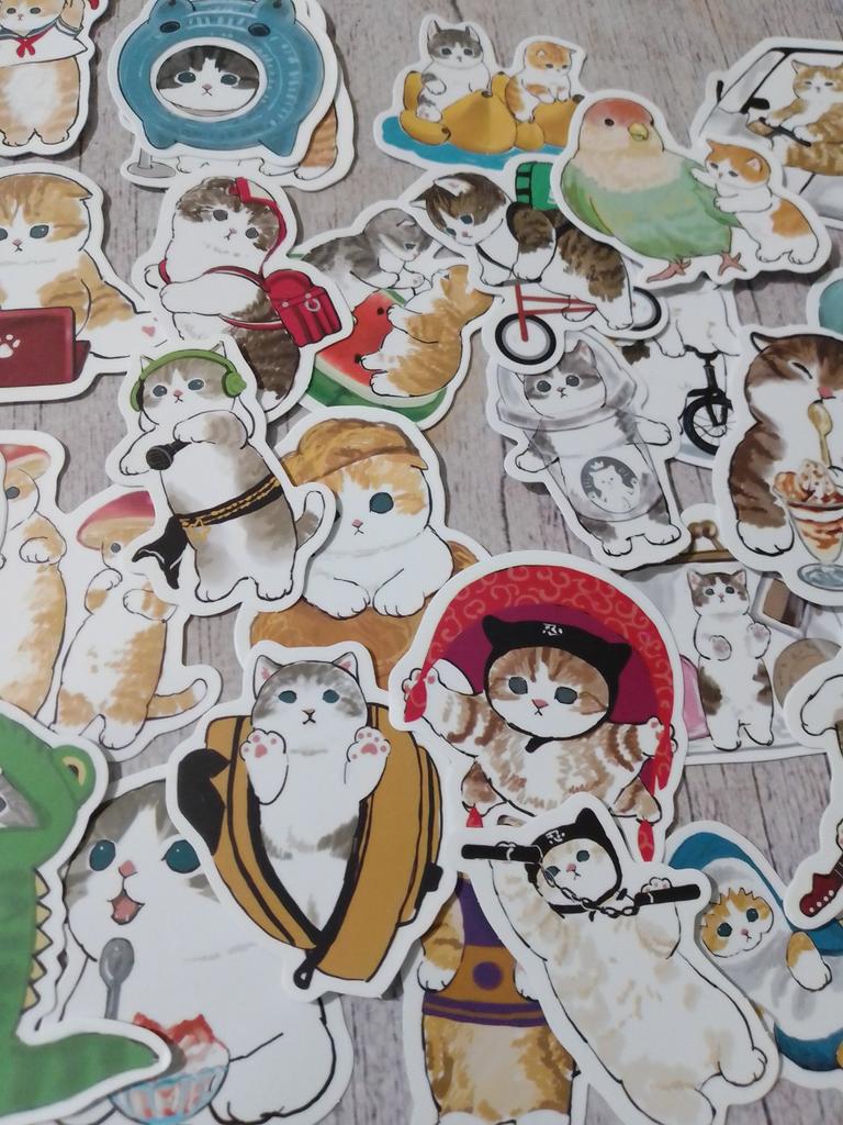 50 peças adesivos bonitos de desenho animado, resistente a rasgos, ampla aplicação, boa adesão, gato fofo, laptop, uso diário