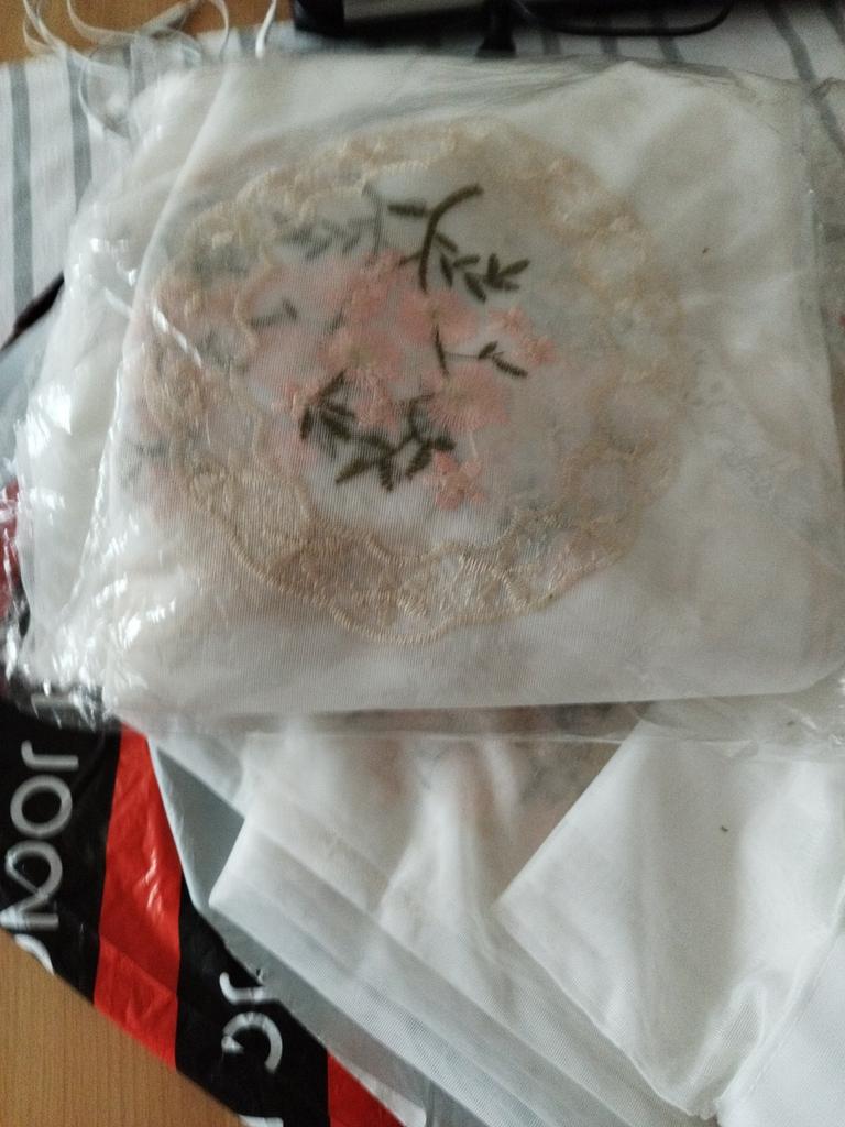 Na foto parece mais bonito do que na realidade. O tule não é branco neve, em comparação com uma folha branca, a tonalidade leitosa é notável, e depois que corda estranha é essa? E o bordado não é da melhor qualidade. 4 de 5