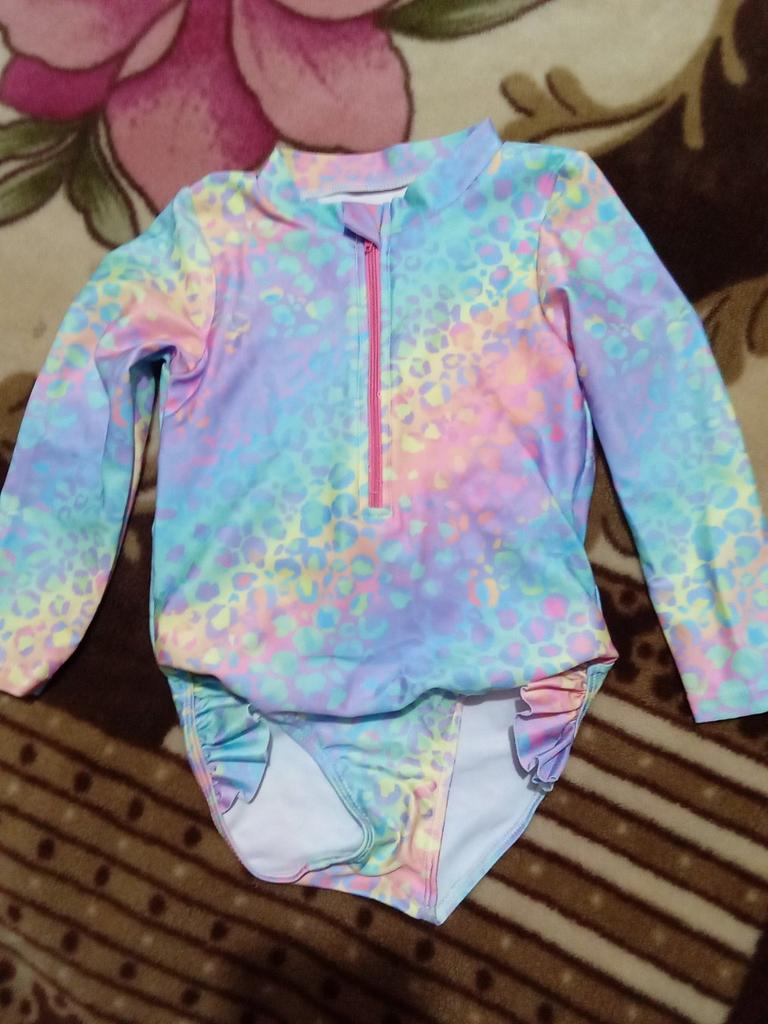 Maiô infantil para meninas com estampa de escama de peixe, babados, manga comprida, roupa de banho, moda praia