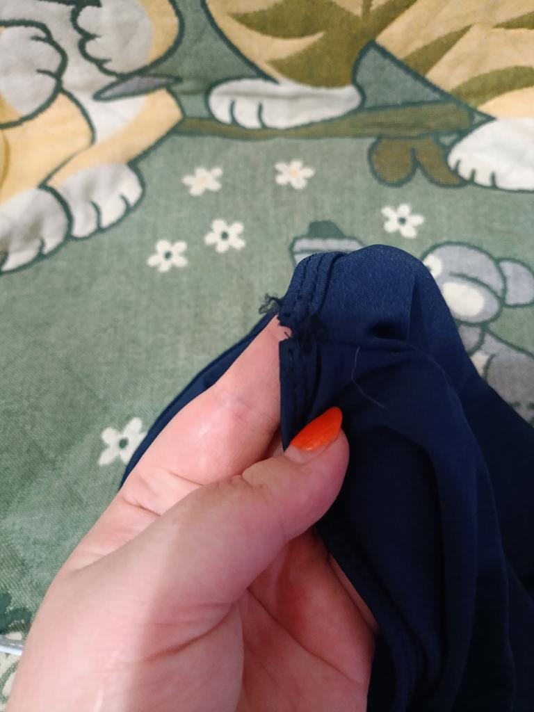 Produto de baixa qualidade, fios soltos. Tamanho infantil.