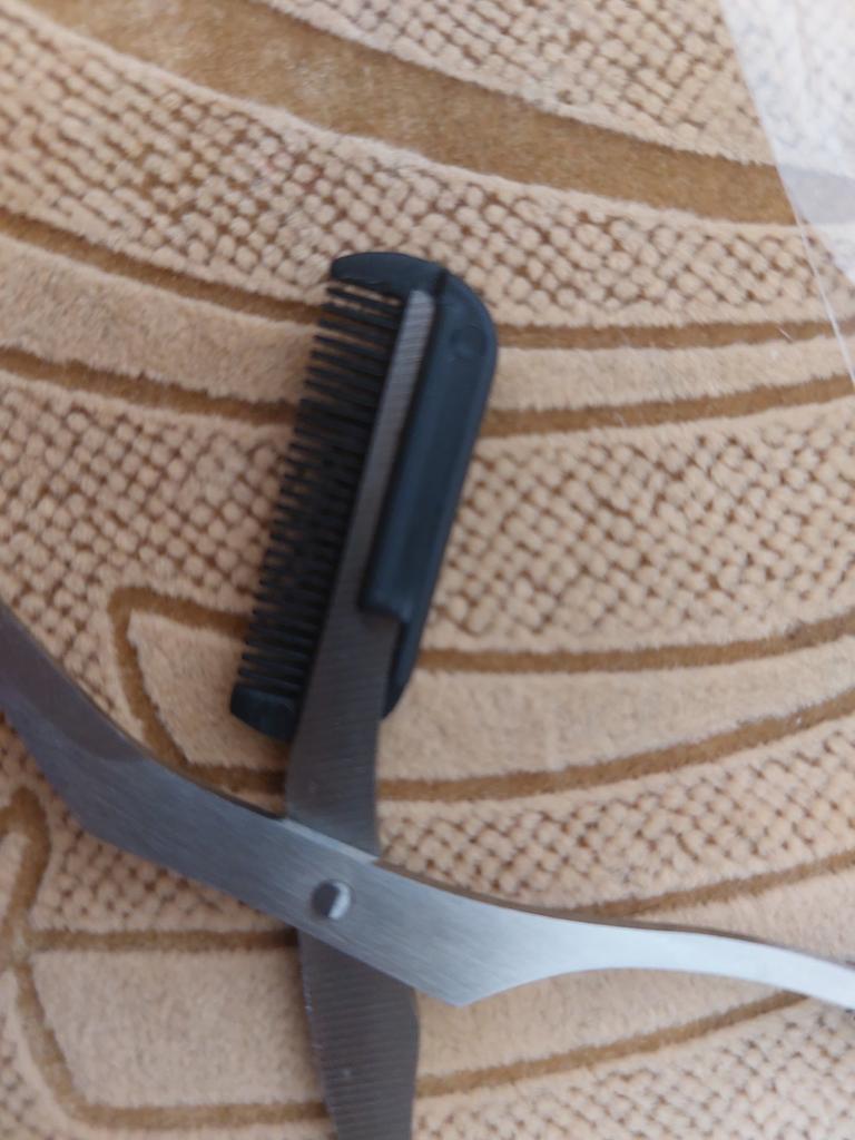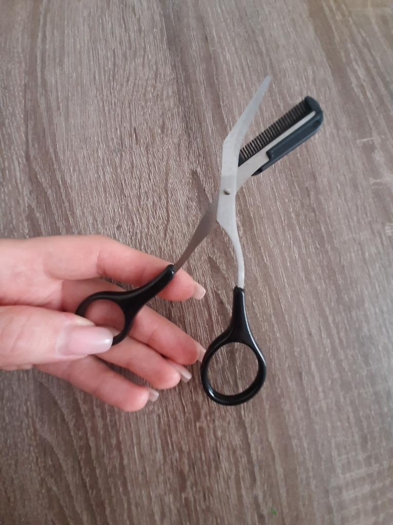 Recebi o produto há um mês, até experimentei no trabalho. Realmente ficou mais prático e até mesmo cortar o cabelo, o produto em si é de boa qualidade, a tesoura é afiada.