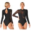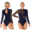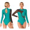 Macacão feminino de manga comprida com malha de ginástica brilhante com strass brilhante