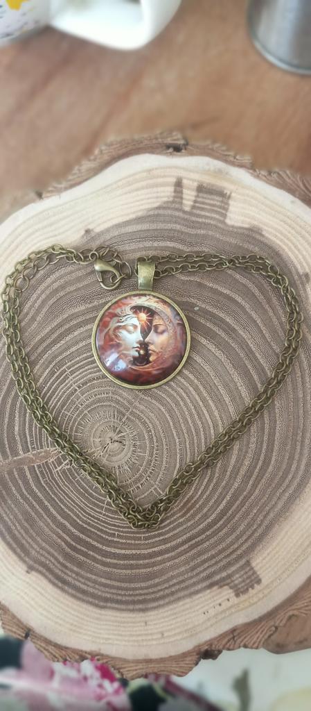 Colar com pingente de cabochão de vidro de lua e sol de bruxaria, joias femininas