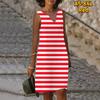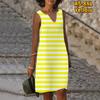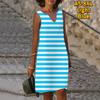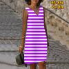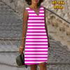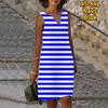Vestido feminino com decote em V e listras de zebra, estampa casual, sem mangas, moda casual, solto, sexy, plus size, XS-8XL