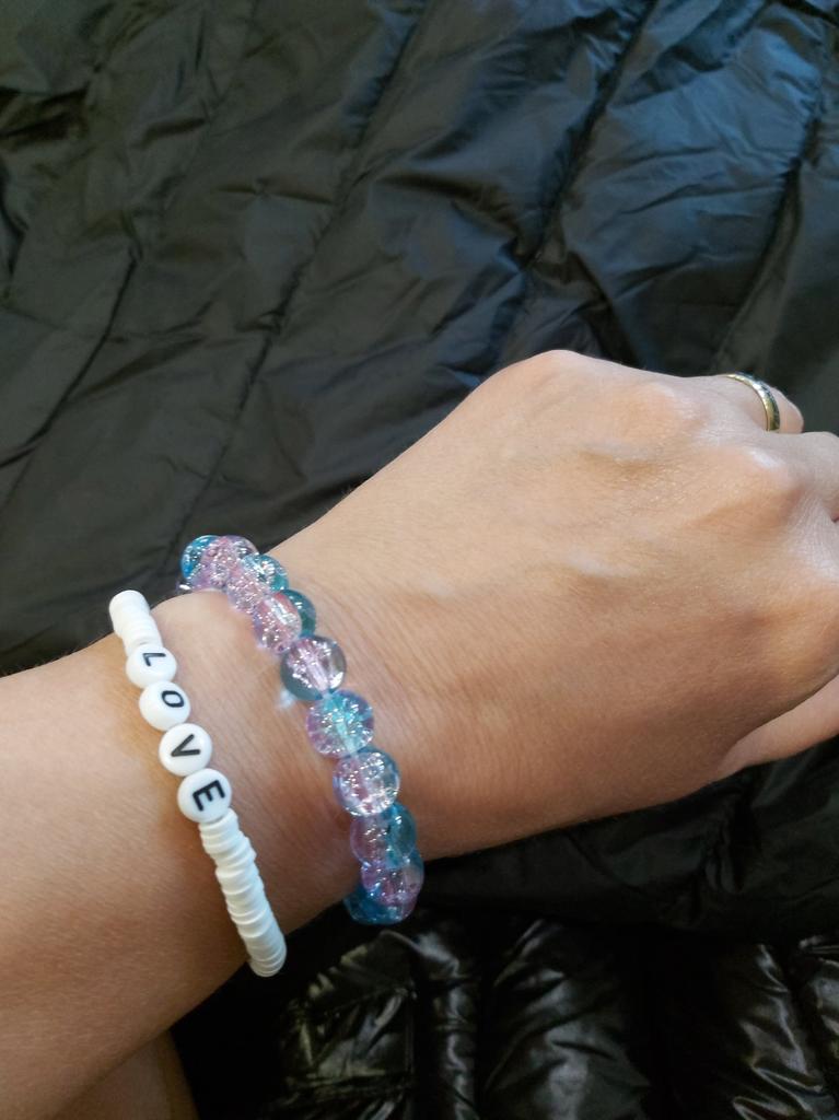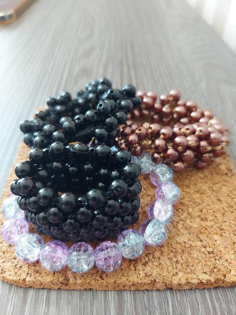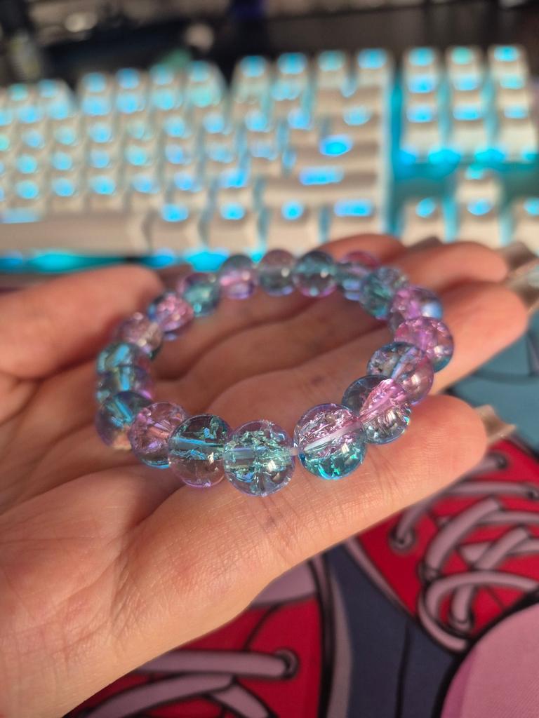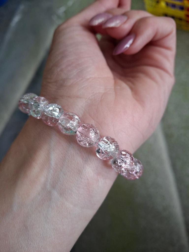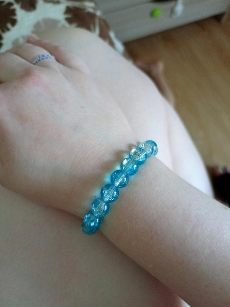 Uma pulseira fofa, confortável, feita de pedra ou vidro,