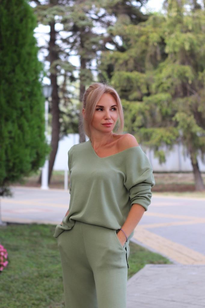 Confortável terno oversized Esses trajes se tornaram muito populares porque são muito confortáveis. •Tamanho: tamanho único. Meu tamanho 84-60-85, serve bem. Adequa-se melhor para altura > 1,65 • Terno = suéter+calça Pulôver é com mangas compridas; Calça: - cintura alta com elástico; -tem bolsos nas laterais; -bastante longo para a minha altura 167 cm. • Calça e suéter podem ser usados separadamente combinados com outras coisas.