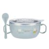 Tigela de bebê com isolamento de aço inoxidável, conjunto de colher, utensílios de mesa para crianças, estampa de desenho animado, tigela de comida para crianças