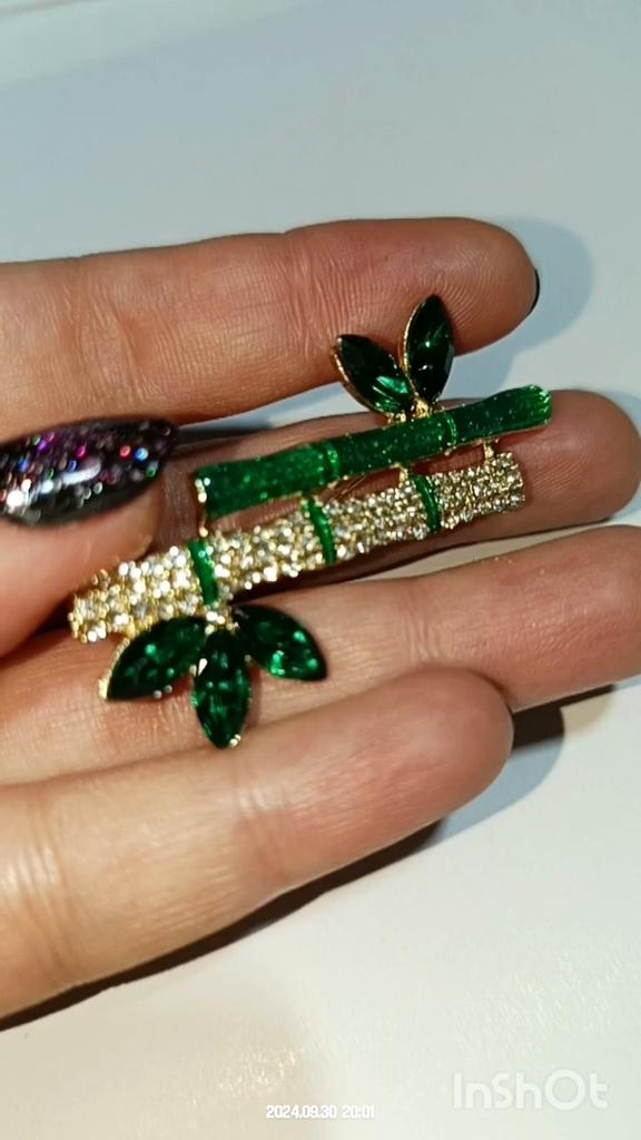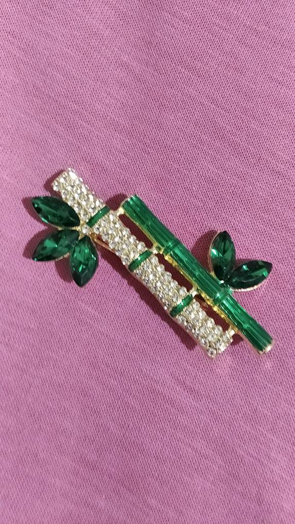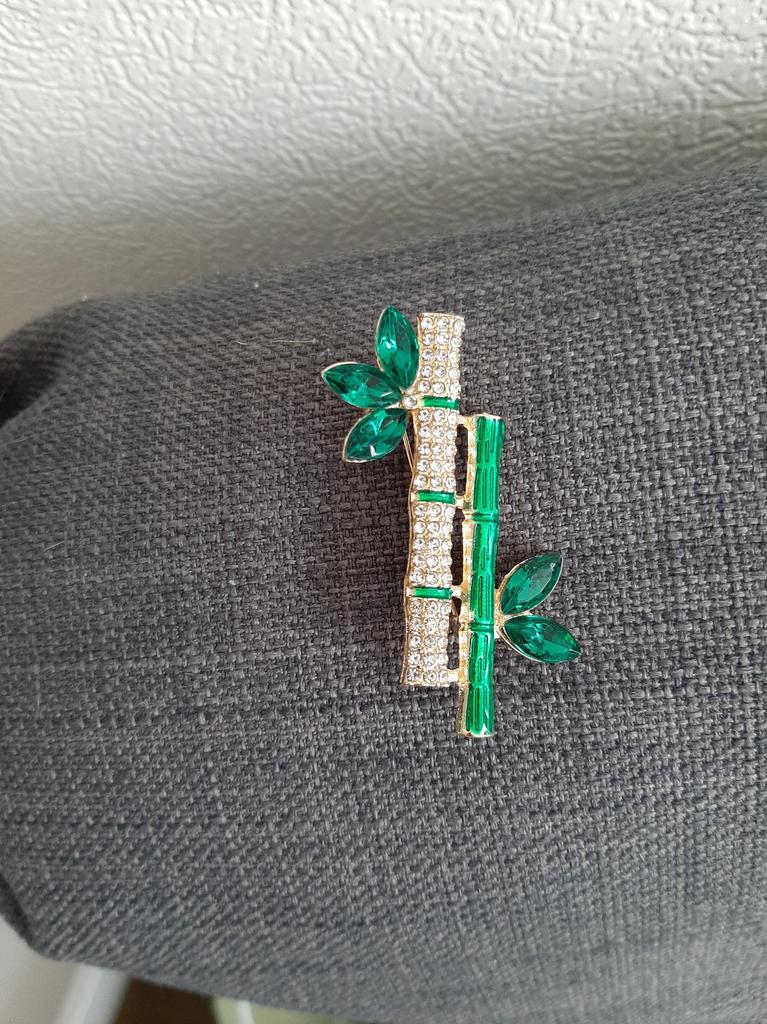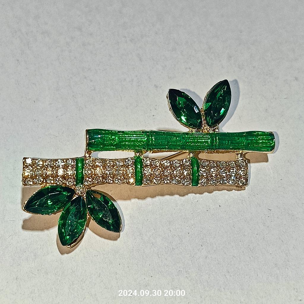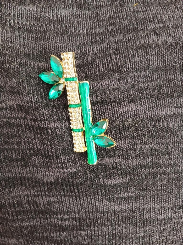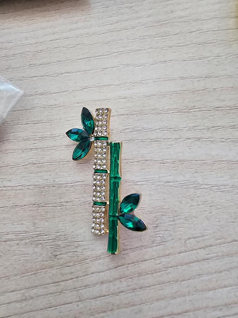 Pino de broche em forma de bambu de planta verde retrô elegante para acessórios de colarinho feminino