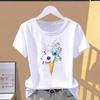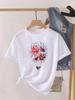 Tamanho Asiático - Roupa Casual Estampada Feminina Florido Aquarela Floral Doce Anos 90 Feminino T Camiseta de Verão Feminina Moda Camiseta Gráfica Manga Curta