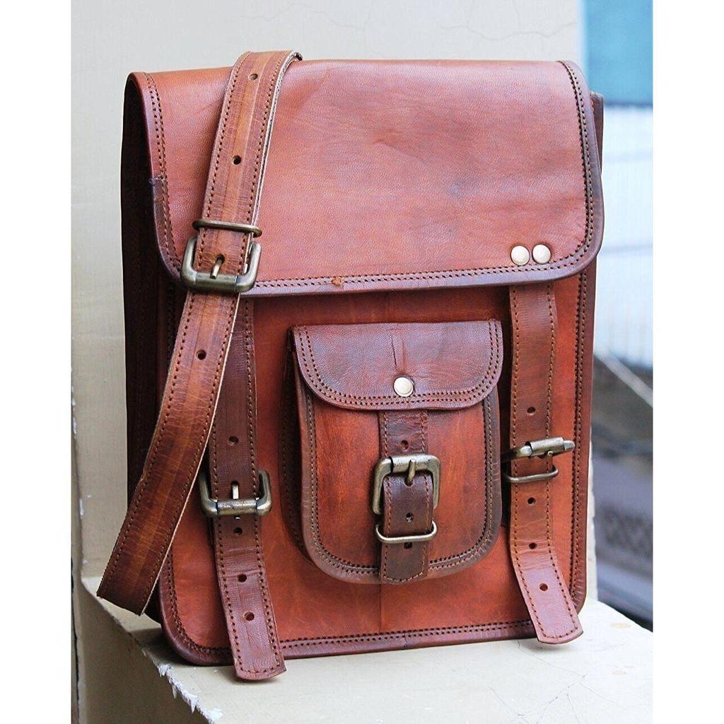 Bolsa carteiro 100% couro de cabra genuíno com forro interno durável feito de lona.