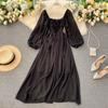 Vintage gola quadrada vestido longo mulher cintura elástica vestidos de festa à noite moda puff manga chiffon vestido roupas femininas 20223