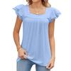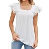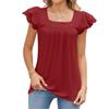 Elegante pétala manga curta casual camiseta gola quadrada blusa feminina verão 2023 oco sólido elegante simples topo para mulher 27773