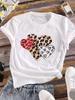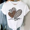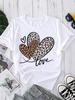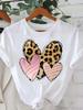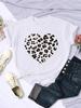 (Tamanho asiático) Camiseta Top Leopardo Amor Coração Estilo Tendência Moda Camiseta Feminina Estampa Senhora Roupa Feminina Casual Manga Curta Camiseta Gráfica
