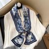 Lenços de seda luxuosos de alta qualidade, lenço de pescoço para mulheres, lenço de seda com corrente, xale decorativo feminino