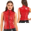 Regatas femininas com aparência molhada com zíper sem mangas colete couro envernizado jaqueta com gola para boate