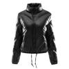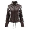 Moda feminina inverno casual fino algodão jaqueta gola de pele sintética e capuz casaco quente com capuz couro pu zíper
