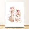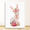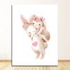 Flores rosa menina decoração do quarto do bebê imagem dos desenhos animados coelho cartaz pinturas animais berçário arte da parede impressão coelho pintura em tela