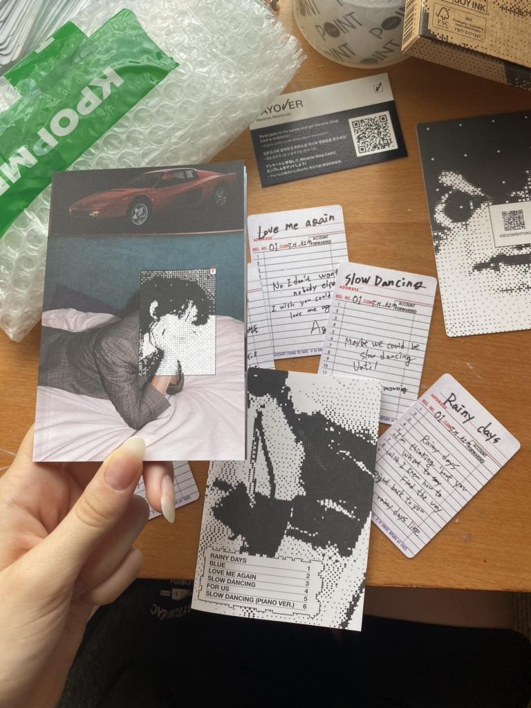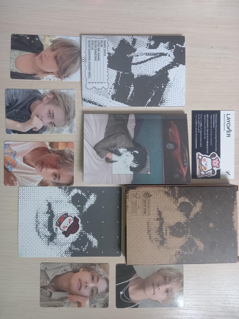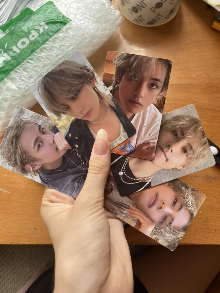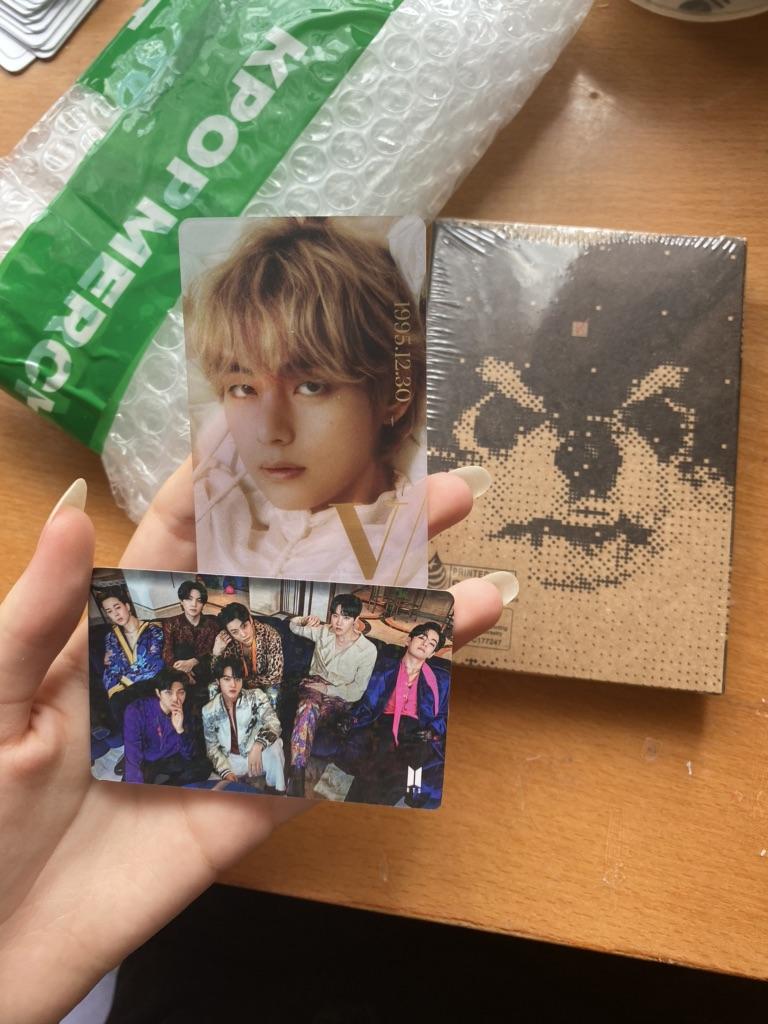 muito legal!! o pedido chegou em 11 dias, para Kiev, em uma caixa e plástico bolha. como presente, o vendedor colocou dois cartões: holográfico frente e verso e translúcido. o álbum em si é muito bem desenhado, Yeontan e Taehyung são super!! Também fiquei satisfeito com o fato de que em vyvors ver. até 5 cartas Eu amo isso.