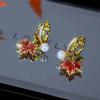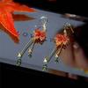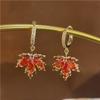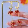 Brincos Vintage de Zircônia de Cristal Folha de Bordo Vermelha para Mulheres Temperamento Strass Borla Brincos Joias de Festa Bijoux Presente