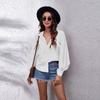 GMXIA Moda feminina casual cor sólida estampa manga comprida blusas e camisas POLO