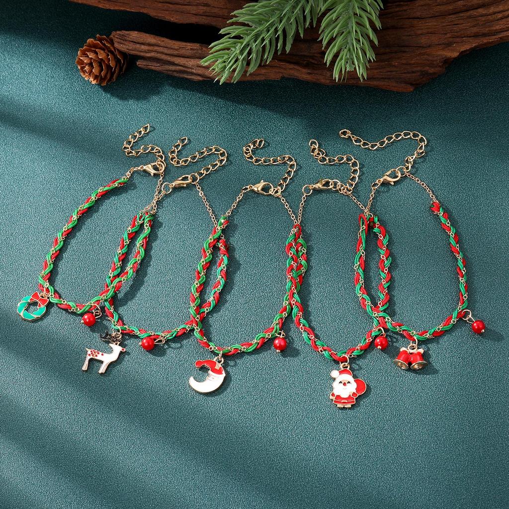 2023 Papai Noel Casal Conjunto Elegante Pulseira Sino de Natal Pulseira Conjunto de Duas Peças Simples Moda Inverno Menina Pulseira Boneco de Neve Pingente de Rosquinha Pulseira