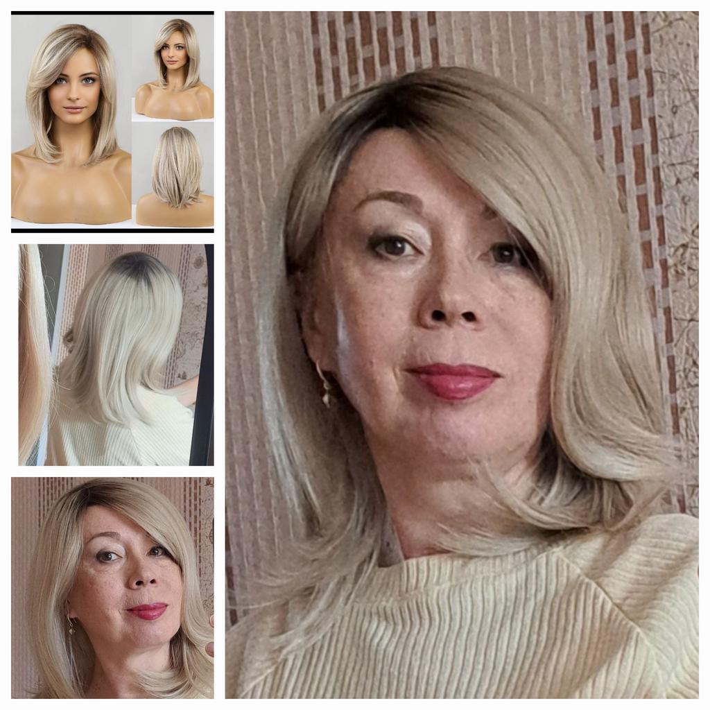 ALAN EATON Perucas loiras para mulheres, comprimento do ombro, peruca sintética em camadas com raízes escuras, cabelo loiro claro, para festa diária