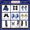 -- Os trajes incluem: Vestido, laço de cintura, pulseira, laço de decote, acessórios de cabelo, pardal dourado, fita, enfeite de pescoço, visões, meias, alça de ombro