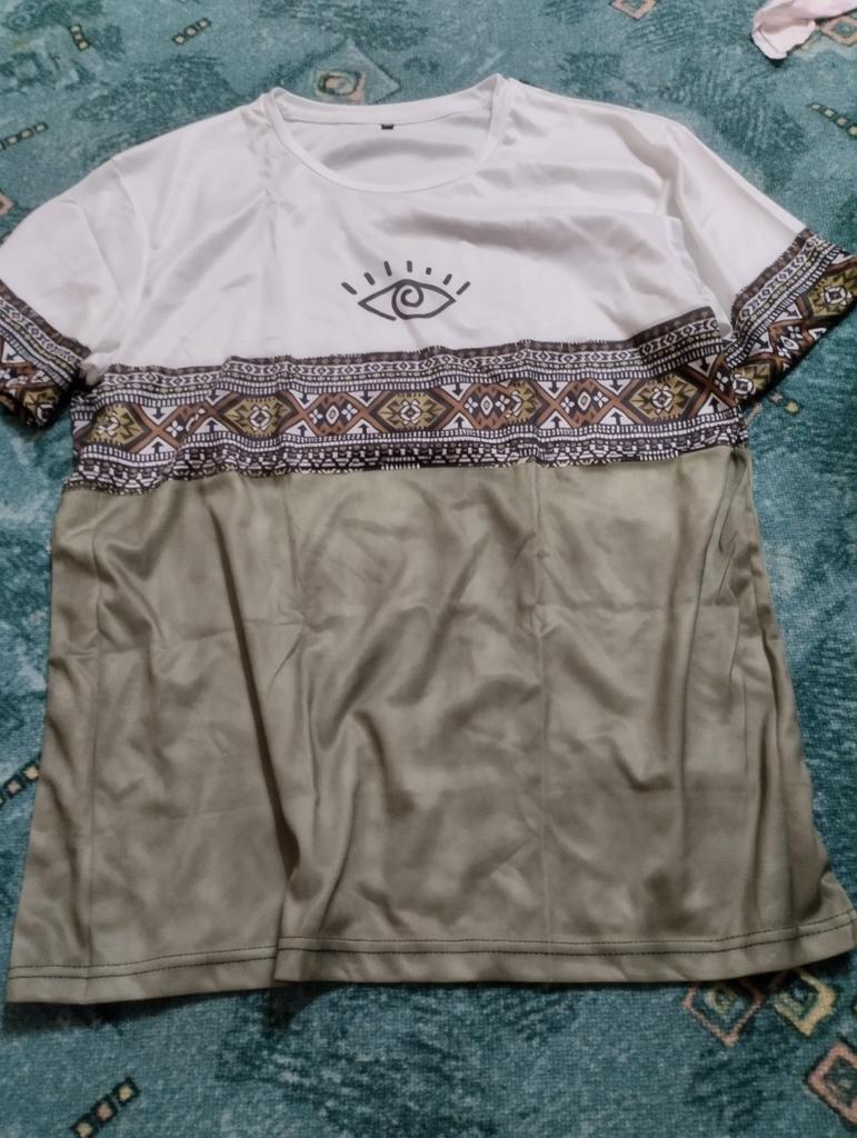 T-shirt com um belo estampado (cores vivas e um belo design, que corresponde à imagem do site). A consistência do tecido não é ótima - "leve". Mas considerando o preço, está tudo bem
