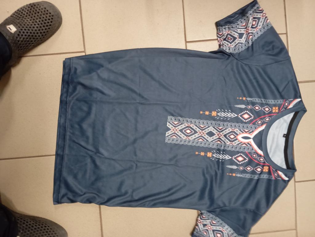 Camiseta sintética normal, lembra uma camisa bordada. O tamanho corresponde.