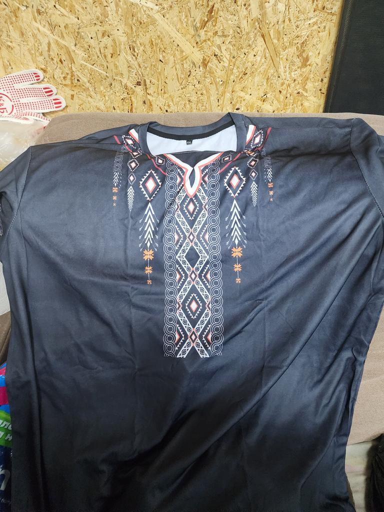 A camiseta parece legal. Sintéticos finos (poliéster), um pouco como viscose. O homem diz que é agradável ao corpo, veremos mais tarde. O desenho é exatamente como na foto. A alfaiataria é perfeita - as costuras são uniformes, os fios não ficam pendurados :)) No geral, satisfeito.
