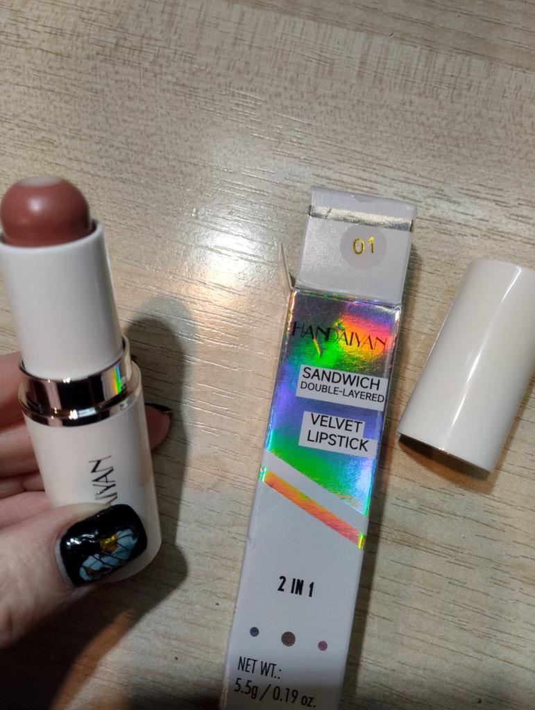Batom muito legal. Já estou encomendando 3 desta série. Fica suavemente nos lábios, fica ótimo e dura muito tempo. Eu recomendo