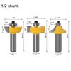 3 peças/conjunto de ferramentas de trabalho em madeira para porta de vidro, cortador de tábuas, brocas de roteador, haste 1/2, haste 12 mm, haste 8 mm, tipo T, ponta esférica