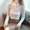 2023 outono gola rendas crochê blusa feminina elegante puff manga longa inferior topos mujer oco branco senhoras camisas 29175