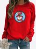 Blusa feminina de outono e inverno com decote redondo, moda casual, cor sólida, manga comprida, estampa de boneco de neve, camiseta solta, tops
