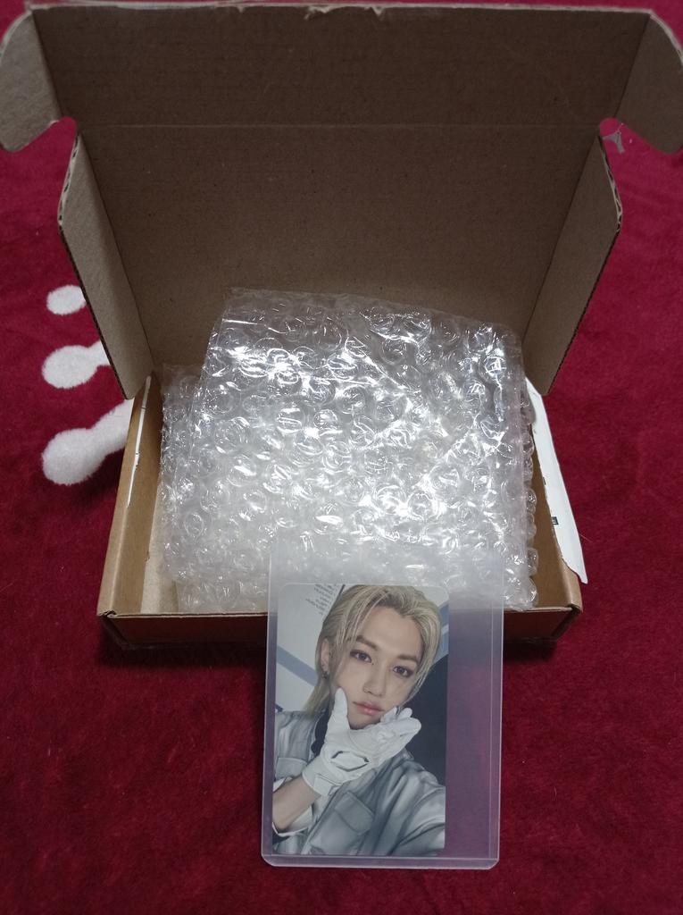 O pedido chegou muito bem protegido e a photocard em perfeito estado. Já está guardada no meu álbum e estou muito feliz pela aquisição. Muito obrigado^^