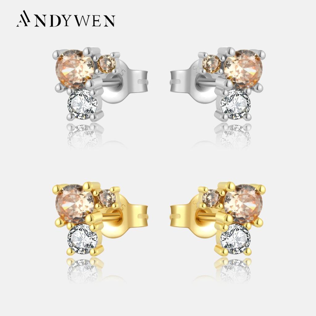 ANDYWEN Brinco Grande de Prata de Lei 925 com Zircônia Cúbica Champagne para Mulheres Joias de Luxo 2023 Piercings Clipes Joias de Luxo