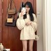 Camisola feminina com decote em v vintage casual solto sólido camisola de malha preppy bonito topos outono inverno moda coreana pulôver