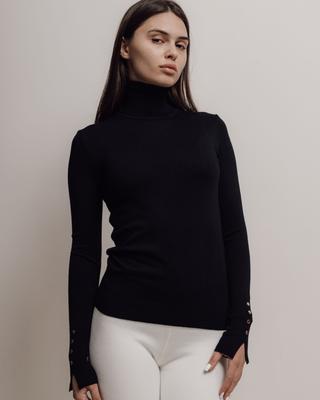 Blusa feminina preta de malha com gola polo e nervuras Gt00111