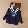 Moda tops para meninas moletom de manga comprida primavera outono meninas turn-down colarinho camisa polo algodão outono crianças camisas roupas