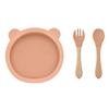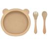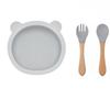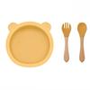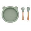 3Pcs/Set Baby Silicone Ventosa Tigela Colher Garfo Conjunto BPA Livre Cabo De Madeira Garfo Colher Alimentação Infantil Antiderrapante Conjunto De Talheres