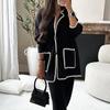 Número do Modelo : Casaco feminino de manga comprida com bolso patchwork fashion
