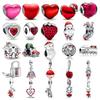 Contas de prata esterlina 925 autênticas, caixa de presente de coração vermelho, pingentes de Papai Noel, pulseiras originais da moda, joias femininas, presente faça você mesmo