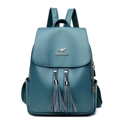 Mochila de viagem feminina de couro macio com grande capacidade e borla para meia-idade