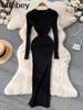 Mulheres outono vestido de malha o pescoço sexy magro elástico oversized básico bodycon vestido longo inverno malha vestidos de camisola quente