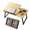 A mesa possui pés telescópicos, que permitem ajuste de altura de 20 a 28 cm. O tampo da mesa também é ajustável, para que você possa definir a inclinação que melhor lhe convier.. A mesa permite que você trabalhe deitado, o que reduzirá a tensão nas costas e no pescoço. Também na parte fixa da mesa existe um recesso para uma xícara de suas bebidas favoritas. E na lateral há uma caixinha para pequenos itens ou fios.