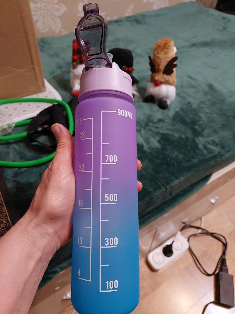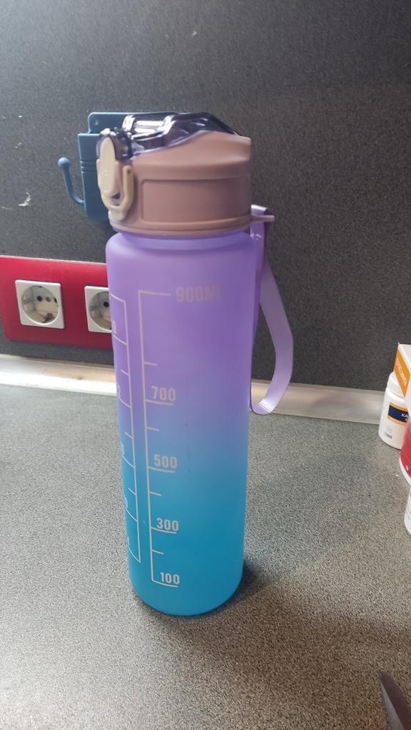 Garrafa de água esportiva 900ml, com marcador de tempo, copo à prova de vazamento, garrafa de água portátil motivacional para esportes ao ar livre, fitness, sem bpa