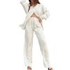 Inclui uma camisa de manga comprida e calças largas com cós elástico para um look elegante e de viagem.