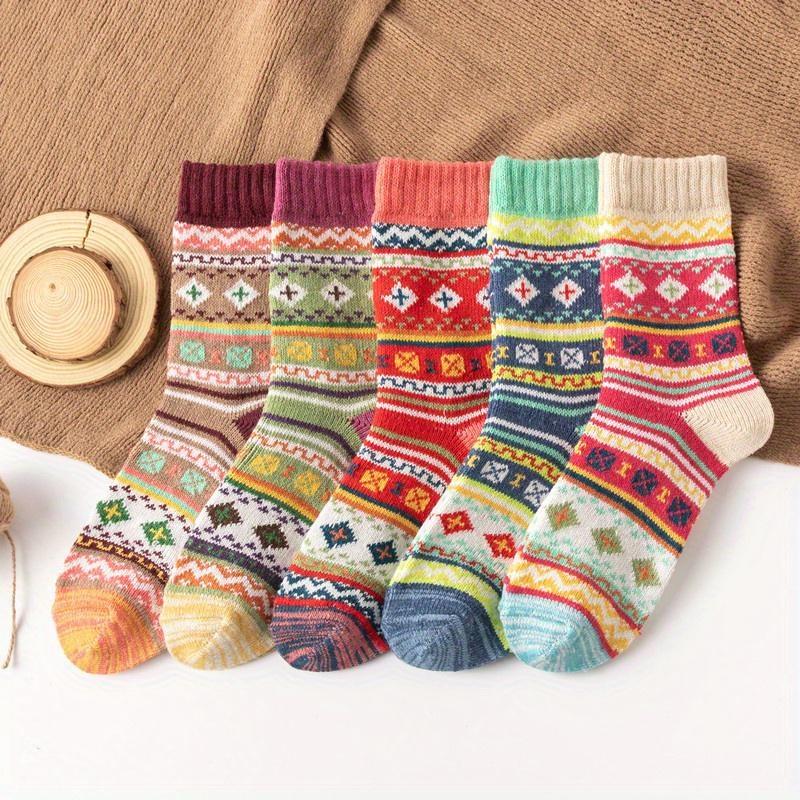 5 pares de meias femininas de inverno, meias grossas de lã quente, meias femininas, meias de Natal